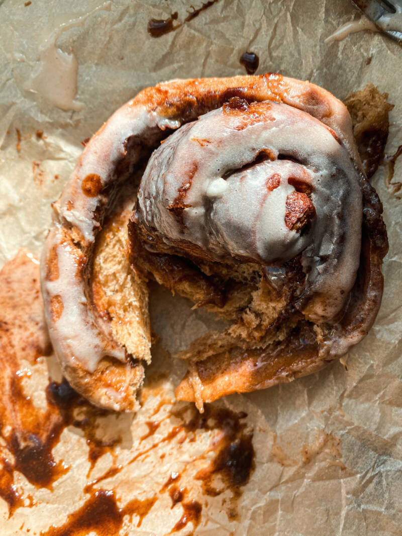 - Generously spread frosting over the baked cinnamon rolls, and enjoy!